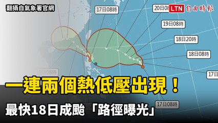 一連兩個熱低壓TD20、TD21出現!最快18日成颱「路徑曝光」