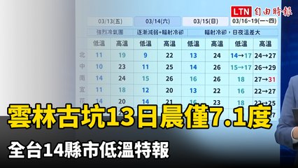 冷氣團發威! 雲林古坑今晨僅7.1度 全台14縣市低溫特報