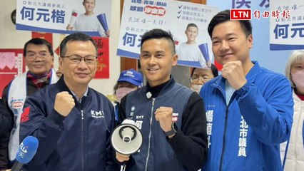 藍營新人何元楷領表登記新北議員初選 羅智強贈大聲公助陣