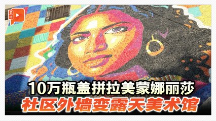 10万瓶盖拼成13米高蒙娜丽莎 装点萨尔瓦多社区外墙