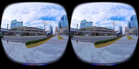 <VR180 3D>JR大阪駅 北側 うめきた広場横の歩道からルクア~バルチカ03の連絡通路まで歩く【ゴーグル...