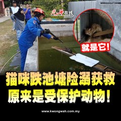 跌落池塘成功被救起 原来不是普通家猫