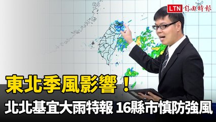 東北季風影響!北北基宜大雨特報 16縣市慎防強風