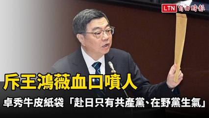 斥王鴻薇血口噴人 卓榮泰秀牛皮紙袋「赴日只有共產黨、在野黨在生氣」