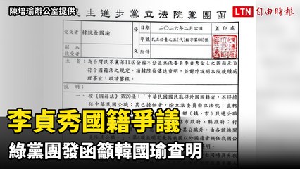 李貞秀國籍爭議 綠黨團發函籲韓國瑜查明、違法應解職