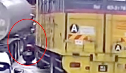 摩托车被罗里包夹