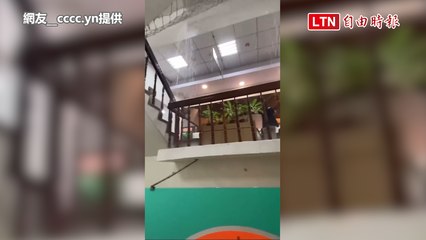 台中大雷雨 西屯圖書館3樓排水孔溢水成「水濂洞」