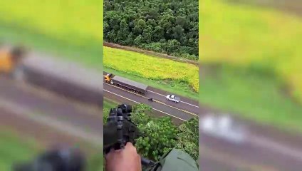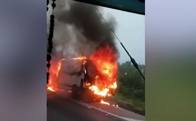 Vídeo mostra caminhão em chamas na BR-277