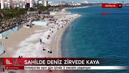 Antalya'da sahilde deniz zirvede kayak keyfi