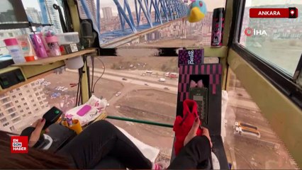 Ankara’da 20 yaşındaki Mezra kule vinç operatörü olarak çalışıyor