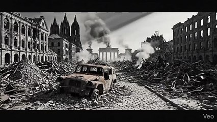 Destroyed cities of Europe after World War 2, dark atmosphere, historical war aftermath...