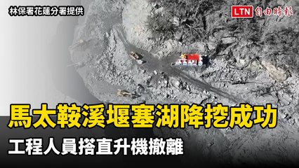 花蓮馬太鞍溪堰塞湖降挖成功見底 工程人員搭直升機撤離