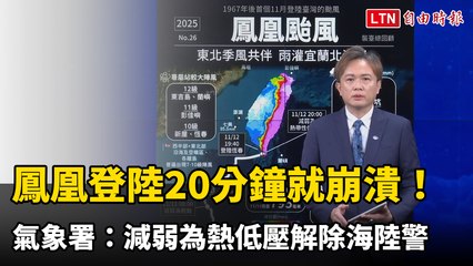 「鳳凰」登陸20分鐘就崩潰!氣象署:減弱為熱低壓解除海陸警