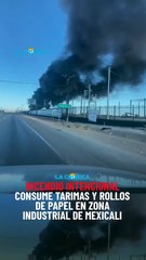 Incendio intencional consume tarimas y rollos de papel en zona industrial de Mexicali