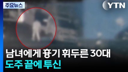남녀에게 흉기 휘두른 30대...도주 끝에 투신 / YTN
