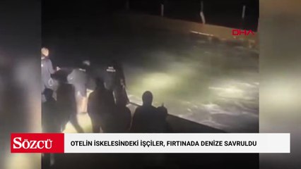 Otelin iskelesinde onarım yapan işçiler, fırtınada denize savruldu