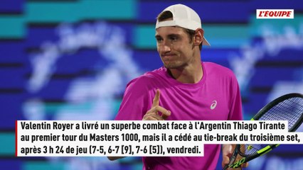 Malgré le sauvetage de sept balles de match, Valentin Royer cède au premier tour du Masters 1000...