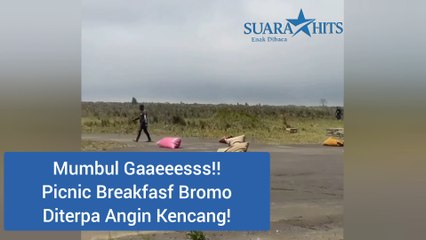 Mumbul Gaess, Angin Kencang Terbangkan Beanbag saat Sarapan di Bromo