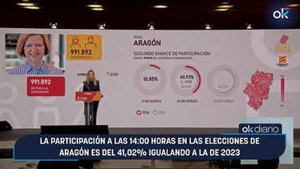 La participación a las 14:00 horas en las elecciones de Aragón es del 41,02% igualando a la de 2023