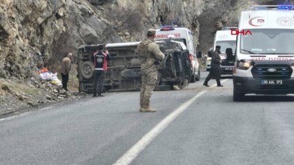 Çukurca kara yolunda minibüs takla attı: 1’i ağır 4 yaralı