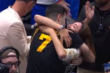 Álvaro Folgueiras celebró su histórico triple en el March Madness con su madre