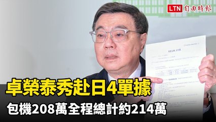 卓榮泰秀赴日4單據 包機208萬全程總計約214萬