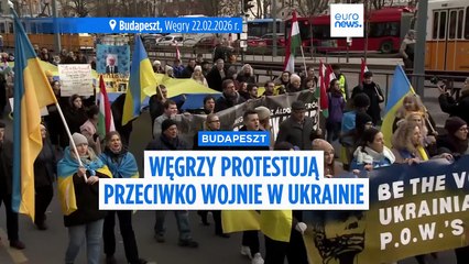 Wiec organizacji obywatelskich w Budapeszcie z okazji czterech lat od pełnej inwazji Rosji na...