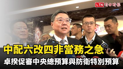 中配六改四非當務之急 卓揆促立院優先審議中央總預算與防衛特別預算