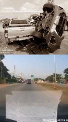 อุบัติเหตุระทึก ! กระบะหลับในพุ่งข้ามเลนชนสนั่น