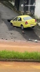 Buraco se abre e carro é engolido após temporal em Juiz de Fora