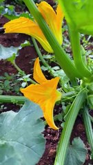 Female flowers and bees on a zucchini plant.