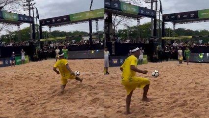 Tiene 45 años y se divierte como uno de 10: el show de Ronaldinho jugando al futvoley