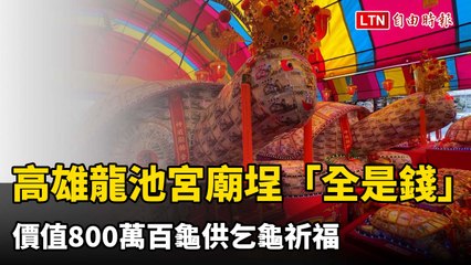 高雄龍池宮廟埕「全是錢」 價值800萬百龜供乞龜祈福