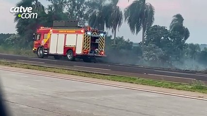 Vegetação pega fogo às margens da BR-163