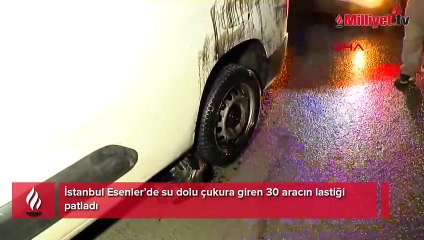 Esenler’de su dolu çukura giren 30 aracın lastiği patladı