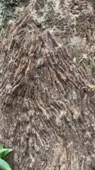 Caterpillar Infestation on Tree Trunk