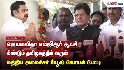 ஜெயலலிதா எம்ஜிஆர் ஆட்சி மீண்டும் தமிழகத்தில் வரும் - மத்திய அமைச்சர் பீயூஷ் கோயல் பேட்டி