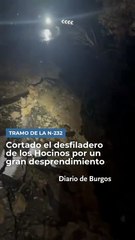 Un gran desprendimiento de tierra y rocas corta la N-232 en el desfiladero de Hocinos