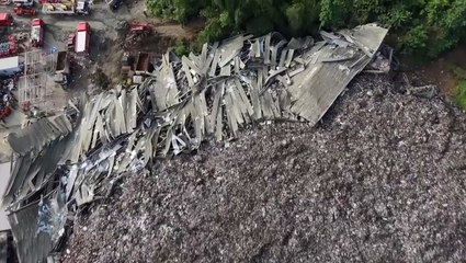 Aerial video shows scale of deadly landfill collapse as workers buried under mountain of garbage