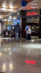 Ce passant aide ces enfants à récupérer leurs ballons gonflables dans ce centre commercial