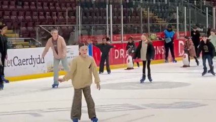 Ice skater tries to show off some cool step-overs but falls hilariously