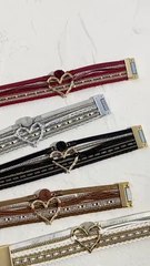 Amazon.com- hotoo Leather Wrap Bracelet for Women Red Beaded Cuff Bracelet with Heart-shape Decor...