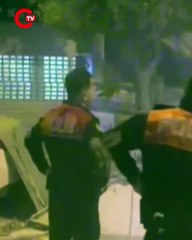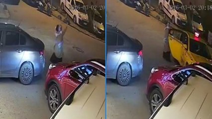 Kaldırımda yürüyen anne ile kızı, çöken binadan savrulan beton parçalarından kaçarak kurtuldu
