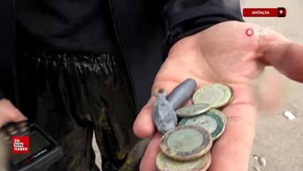 Antalya'da altın avı! Dev dalgaların vurduğu sahilde dedektörle altın avına çıktılar