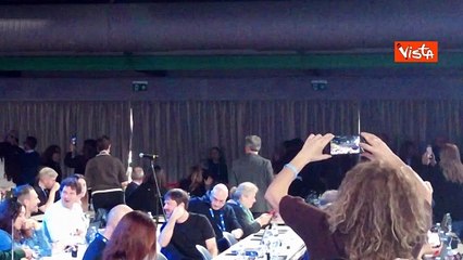 Irina Shayk arriva in Sala stampa, Conti l'aspetta con i fiori