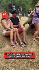 Young elephant becomes overly affectionate with tourist and won't let him leave
