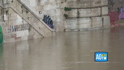 Maltempo, a Roma il fiume Tevere in piena: banchine e monopattini sott'acqua
