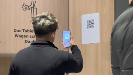 Guy scans a barcode for WiFi but a cheeky monkey shows up on screen