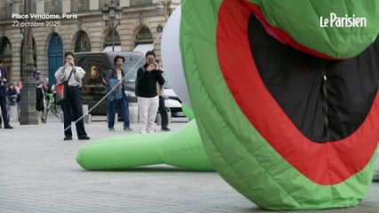 Une énorme grenouille gonflable s'installe place Vendôme, à Paris