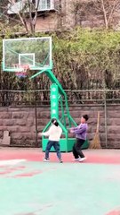 Ce papy montre aux jeunes comment on joue au basket